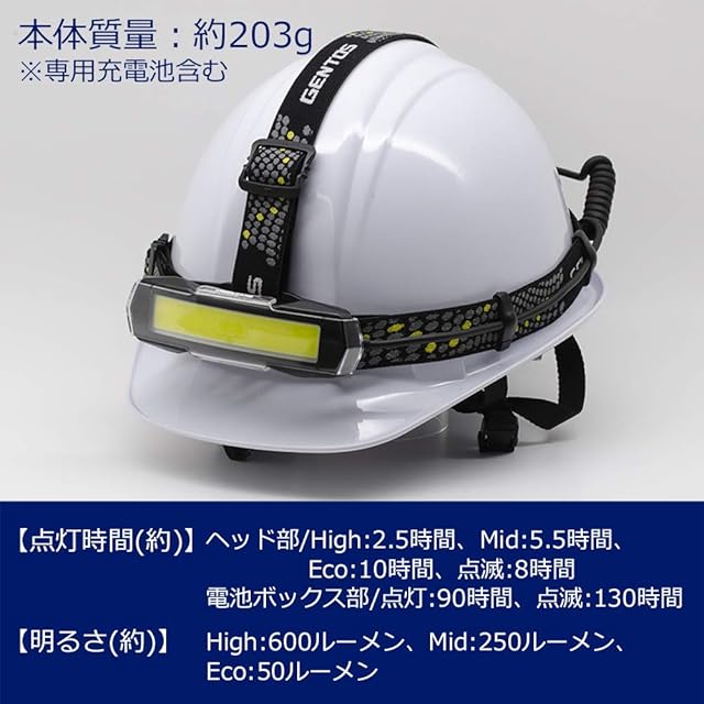 商品名:GENTOS(ジェントス) LED ヘッドライト USB充電式(専用充電池/単3電池) 600ルーメン NRX-180H COBライト
