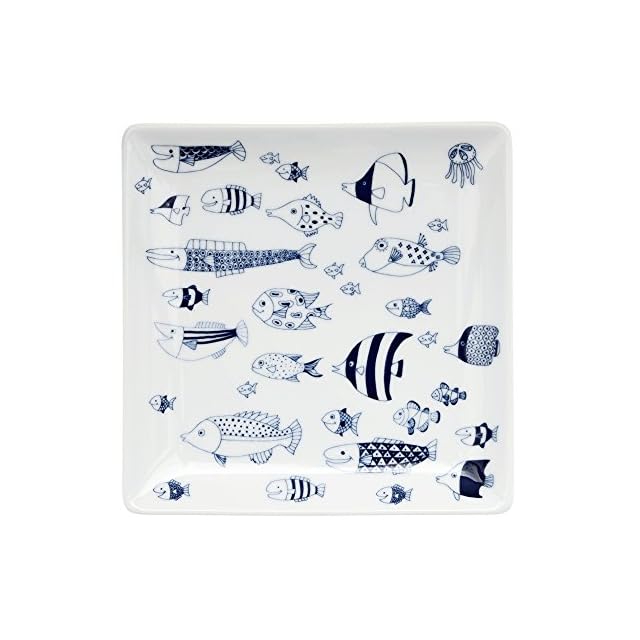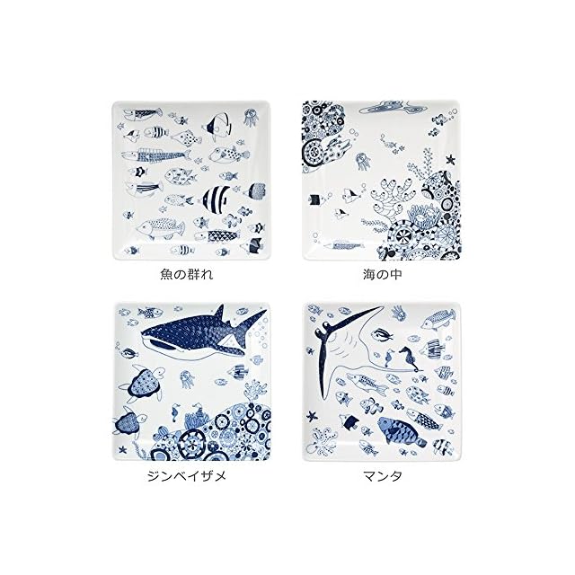 商品名:natural69 【 波佐見焼 】 cocomarine 正角皿M 魚の群れ / ナチュラル69 はさみ焼き 食器 ココマリン しょうかくざら 角皿 電子レンジ 食洗機対応 日本製 おしゃれ かわいい 北欧 和食器 陶磁器 プレゼント ギフト 新築祝 結婚祝 内祝 ナチュラルロック