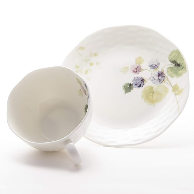 NARUMI(ナルミ) カップ ソーサー セット ルーシーガーデン 210cc ベリー柄 5柄セット かわいい おしゃれ レリーフ ティー コーヒー 兼用 電子レンジ温め 食洗機対応 ギフト箱入り 96010-23067P