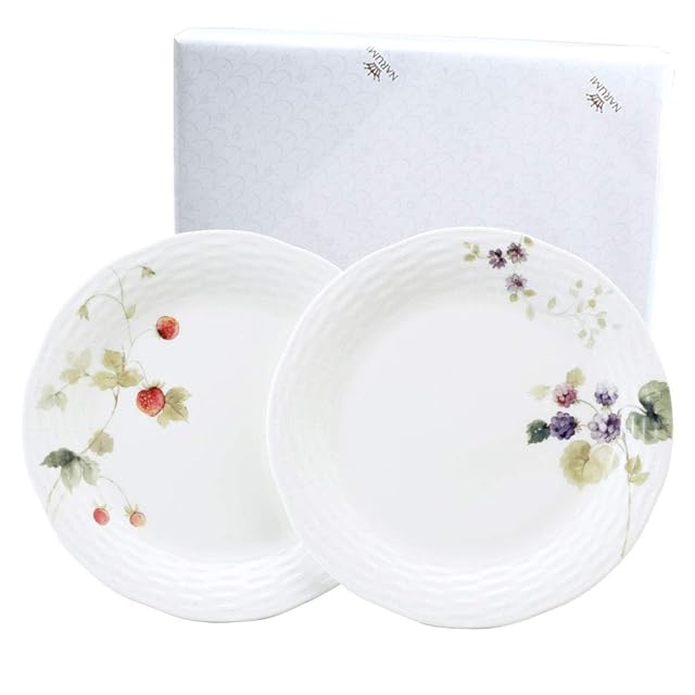 NARUMI(ナルミ) プレート 皿 セット ルーシーガーデン 24cm ベリー柄 2柄セット おしゃれ かわいい レリーフ 結婚祝い 母の日 プレゼント 電子レンジ温め 食洗機対応 ギフト箱入り ラッピング済 96011-21955PAZ