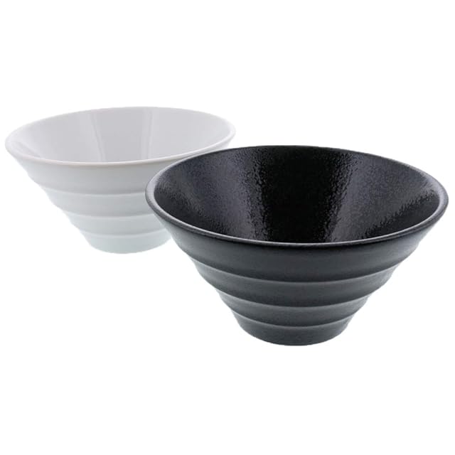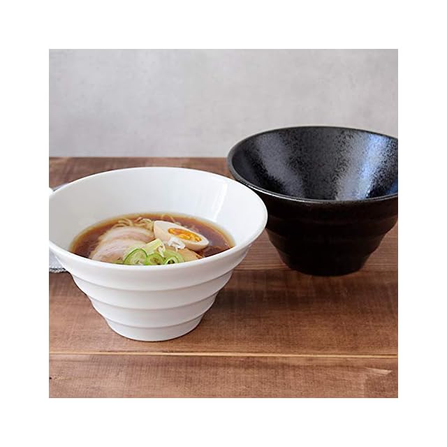 商品名:どんぶり台形 ボーダー 19cm 丼 丼ぶり2色セット 和食器 (黒耀, 白)