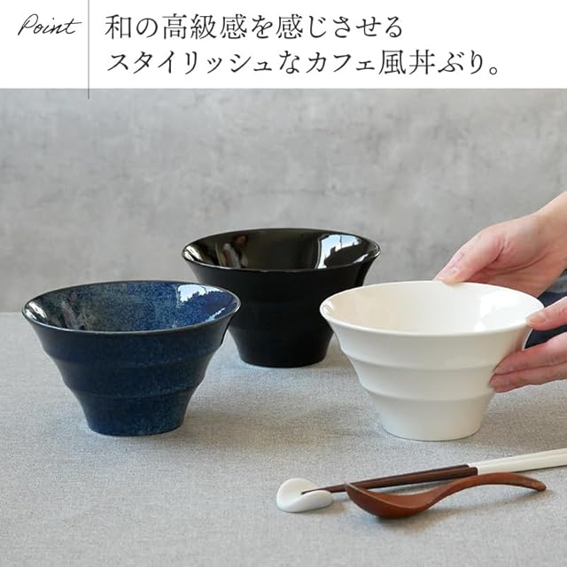 商品名:EAST table(イーストテーブル) どんぶり 窯変紺 小 17cm 台形ボーダー 日本製 食洗器対応 レンジ対応 712-032-01