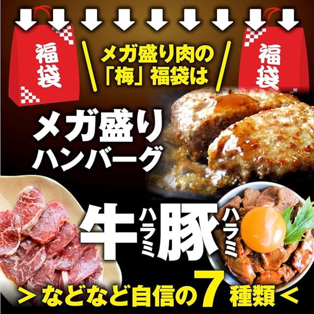 しゃぶまる 肉 福袋 肉の福袋 梅袋 メガ盛り 総重量2.5kg超 (7種 食べ比べ)