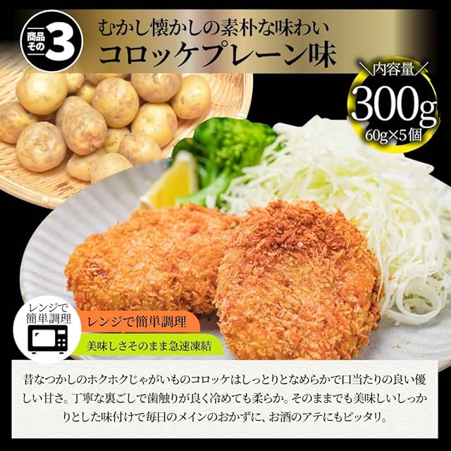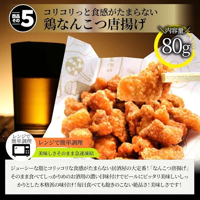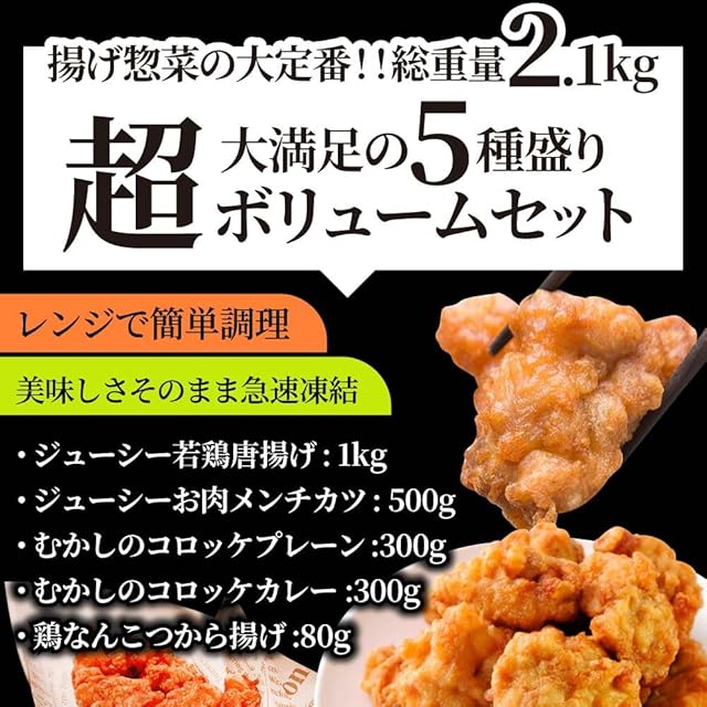 【内容量】・若鶏から揚げ 1kg・メンチカツ 500g・コロッケプレーン 300g・コロッケカレー 300g・鶏のなんこつ唐揚げ 80g