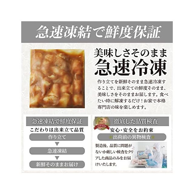 【急速凍結】鮮度そのままの美味しさをお届けするため、-35度の急速凍結で冷凍したお肉は鮮度そのままに出来立ての美味しさをお届けします。 食べたい時に解凍するだけで専門店の味を味わえます。厳しい検査をクリアした商品のみをお届けいたします。