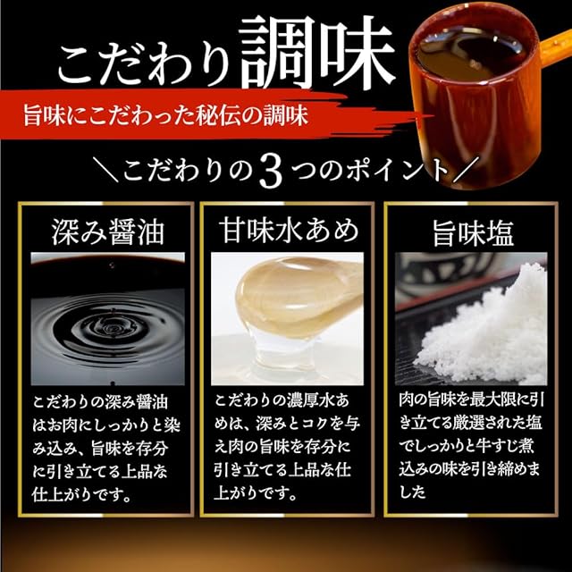 【おいしさの秘密】特製の甘だれでじっくり丁寧に煮込んだので、とろける絶品濃厚な味わいを楽しめます。