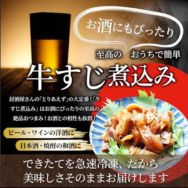 【商品特徴】コラーゲンたっぷりの牛すじ肉をとろとろに煮込みました。湯煎するだけで簡単手軽に専門店の味を味わえる自信の逸品です。