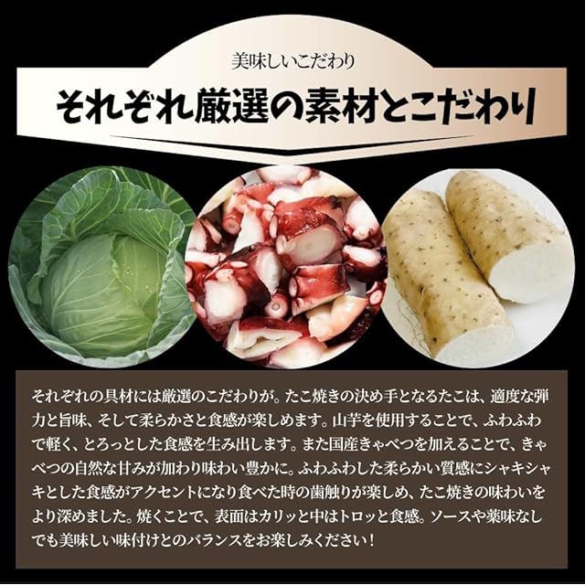 【名称】たこ焼き<br> 【凍結前加熱の有無】加熱してありません <br> 【加熱調理の必要性】加熱してお召し上がりください <br> 【原産国名】ベトナム <br> 【輸入者】富士通商株式会社<br> 東京都中央区築地1丁目13-13北水ビル9F <br> 【販売者】有限会社しゃぶ亭まる <br> ※原材料配合割合:たこ5%(仕込み時) <br> 【注意】※袋ごと電子レンジに入れないでください。<br> ※調理時間は電子レンジの機種、個数等により多少異なります。<br> ※調理後冷たい場合は追加で10秒ずつ加熱してください。<br> ※加熱調理後の商品の取り出し、お召し上がりの際にはやけどにご注意ください。 <br> ※一度溶けたものを再び凍らせると品質がかわることがありますのでご注意ください。<br> 【本製品に使用した原材料のアレルギー物質】<br> 卵、小麦、大豆、やまいも <br>