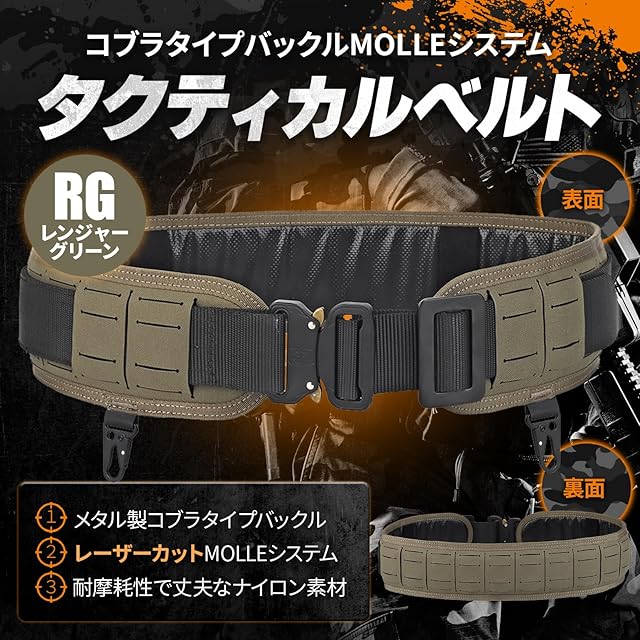 商品名:[MILQUEST] タクティカルベルト 『軽量化レーザーカット仕様』 MOLLEパッドベルト コブラバックル モールベルト サバゲー ファーストライン (レンジャーグリーン)
