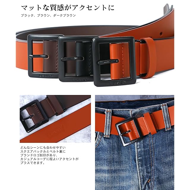 商品名:[リーバイス] ベルト メンズ レザー 牛革 革 カジュアル スクエア バックル ブランド ロゴ 刻印 ブラック Free