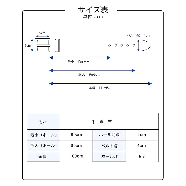 Fサイズ= (約)ベルト幅 4cm ホール数 5個 ホール間隔 2cm