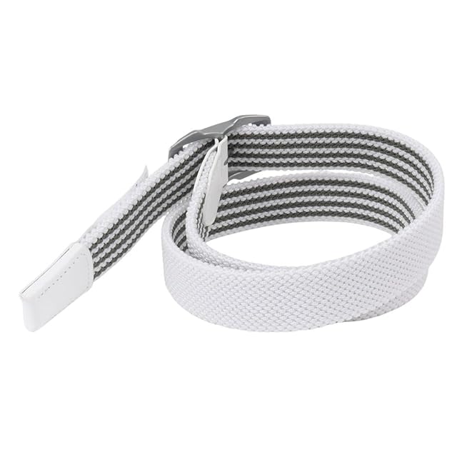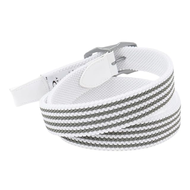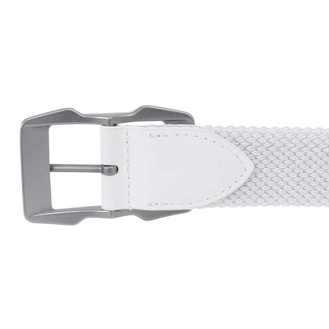 ストレッチゴムが入った編み込みリバーシブルベルトはプレー中も快適に使える。成型のバックルが存在感と高級感をアピールする。ベルト幅約3.5cm、全長約110cm、ウエスト最大95cmまで対応可能。