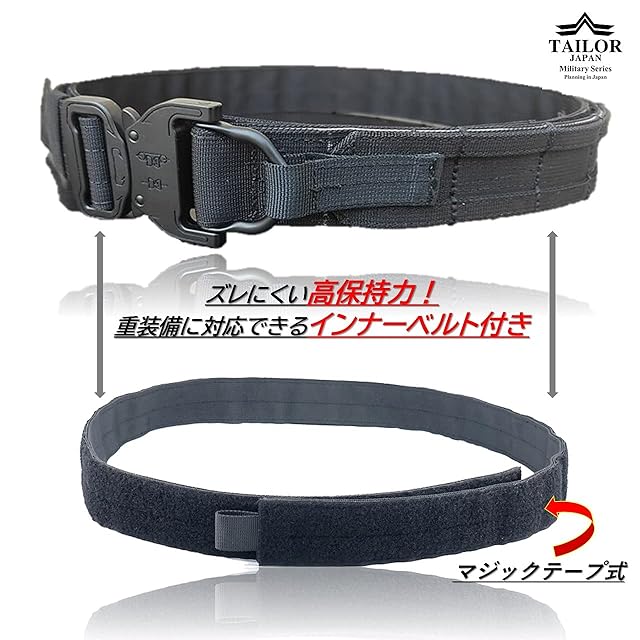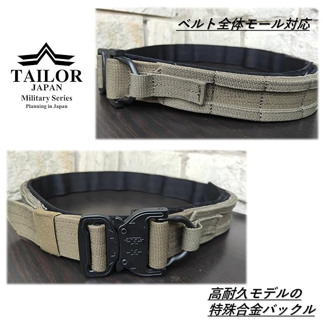 [TAILOR JAPAN] デューティーベルト ガンファイターベルト サバゲーベルト タクティカルベルト インナーベルト付き ガンベルト モールベルト コブラバックル 実物素材 (レンジャーグリーン, M)