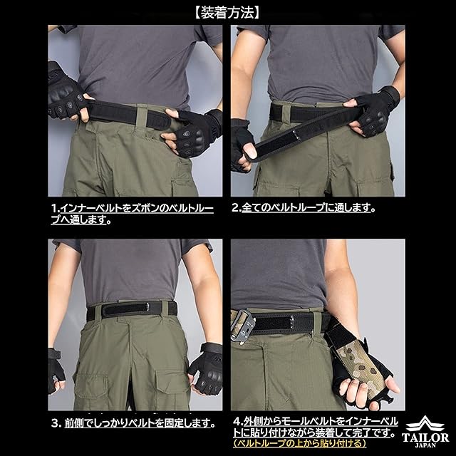 商品名:[TAILOR JAPAN] デューティーベルト ガンファイターベルト サバゲーベルト タクティカルベルト インナーベルト付き ガンベルト モールベルト コブラバックル 実物素材 (レンジャーグリーン, M)