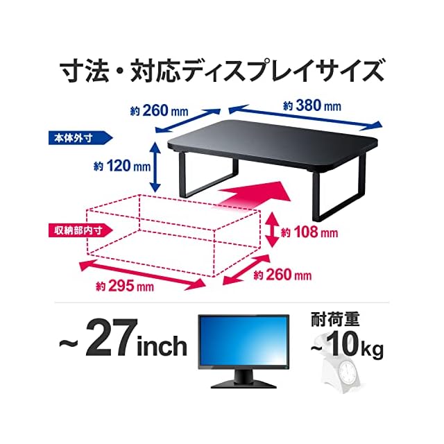 商品名:エレコム モニター台 モニタースタンド ディスプレイ 台 ~27インチディスプレイ 高さ12cm 耐荷重 10kg 幅38cm×奥行26cm ブラック PCA-DPSW3812BK