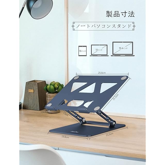 商品名:アオビホ(Aoviho)-ノートパソコンスタンド- タブレットホルダー PC 折りたたみ式 人間工学 無段階高さ&角度調整可能 姿勢改善 腰痛&猫背&肩こり解消 滑り止め 在宅仕事 机 省スペース アルミ製軽量 ZOOM会議 Macbook Air,Macbook Pro,iPad,15.6インチまでのノートパソコンやタブレットに対応 (勝ち色)
