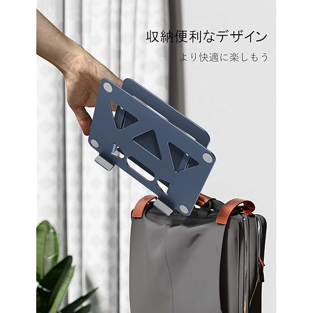 4、【持ち運び&収納便利&省スペース】弊社のノートパソコンスタンドは折り畳み式なので、二箇所の回転軸を折と、外出や出張等々に持ち運んで使用することができます。14インチのカバンにいれても平気です。スタンドの底部にキーボードなどが収納でき、省スペースを有効に活用されます。