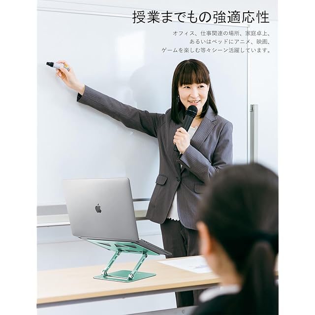 2、【角度調整可能&人間工学&無段階高度】人間工学デザインにより、高度と角度を無段階調整可能です。PC作業やタブレット用途等、お好みのまま、適当な高さやアングルを調整し、在宅ワークでも楽に。ノートパソコンスタンドを使用すると、パソコンと人の視線は一致し、それと姿勢が正しくなり、背筋が伸び、長い間のデスクトップ作業で、人の首と肩に負担を軽くでき、猫背や腰痛など有効に防止できます。
