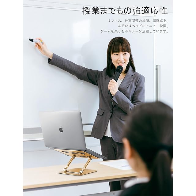 商品名:アオビホAoviho-ノートパソコンスタンド- タブレットホルダー PCスタンド 折りたたみ式 人間工学 無段階高さ&角度調整可能 姿勢改善 腰痛&猫背&肩こり解消 滑り止め 在宅仕事 つくえ 机 省スペース アルミ製軽量 ZOOM会議 Macbook Air,Macbook Pro,iPad,15.6インチまでのノートパソコンやタブレットに対応 (黄金色(こがねいろ))