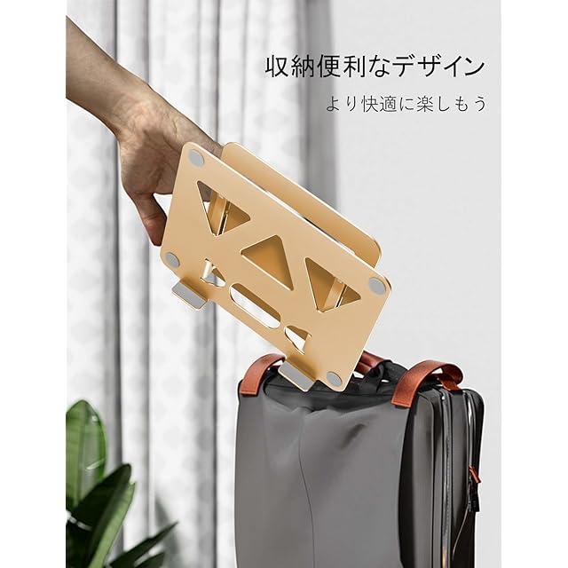 4、【持ち運び&収納便利&省スペース】弊社のノートパソコンスタンドは折り畳み式なので、二箇所の回転軸を折と、外出や出張等々に持ち運んで使用することができます。14インチのカバンにいれても平気です。スタンドの底部にキーボードなどが収納でき、省スペースを有効に活用されます。