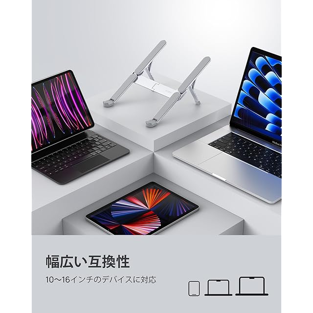 ⭐【対応機種】Macbook/Macbook Air/ Macbook Proシリーズ/Surface/Surface Proシリーズ/Surface Book/iPad Pro/Sony/HP/Kindle/HUAWEIなど10-16インチのデバイスに対応しております。ipadや液タブを載せるのもよいです。パケージ内容:1*ノートパソコンスタンド、1*ベルベットの収納袋、1*日本語取扱説明書。