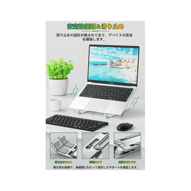 【滑り止め&安定性抜群】滑り止めシリコンパットはスタンドの上と下に付いているので、PCを全面的な保護できるではなく、デスクなどの接触する面も保護できます。高品質連結金具スムーズに引っ張れる、安定性が高い。様々なパソコンの重量を耐えられます。