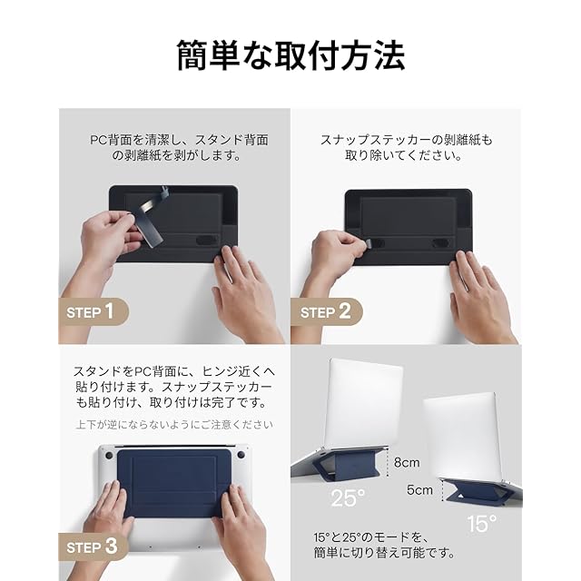 【粘着式で取り外し簡単】本品は繰り返し接着可能なリムーバブルグルーを採用するため、場合による貼りながら調整することや、剥がしてまた貼ることも、思いのままにできます! ご注意:取り外す場合、無理な力を加えないよう、上部の任意の角から剥がし始めてください。また、スタンドの粘着面に埃がついた場合は粘着面を水洗いし、自然乾燥させてからご使用ください。 何かご不明な点等がございましたら気軽にお問い合わせください。