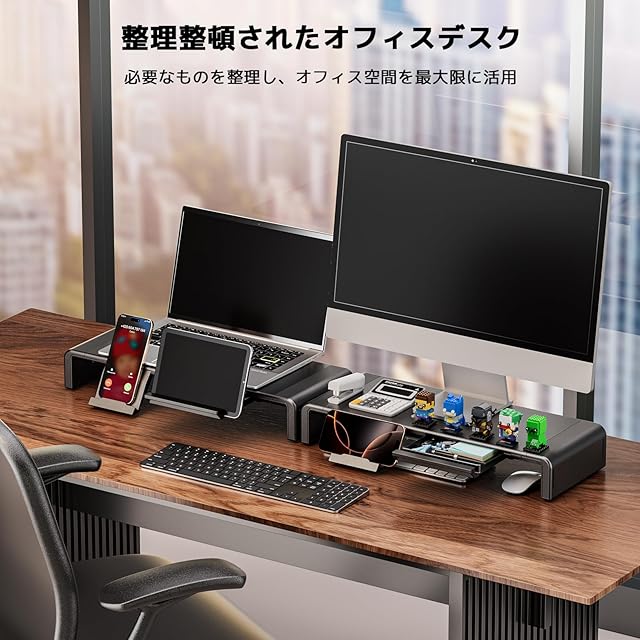 商品名:Klearlook モニター台 机上台 耐荷重25kg 折りたたみ式 三段階の幅調整可能 ノートパソコンスタンド モニタースタンド デスクスタンド キーボード収納 引き出し スマホ・タブレットトレー (2個入り ブラック)