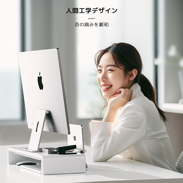 人間工学を追求:モニターを8センチ持ち上げることができる人間工学に基づいたデザイン。視線が自然に上がり、背筋を伸ばすことができます。姿勢を正しく保つことができれば、楽な作業ができます。