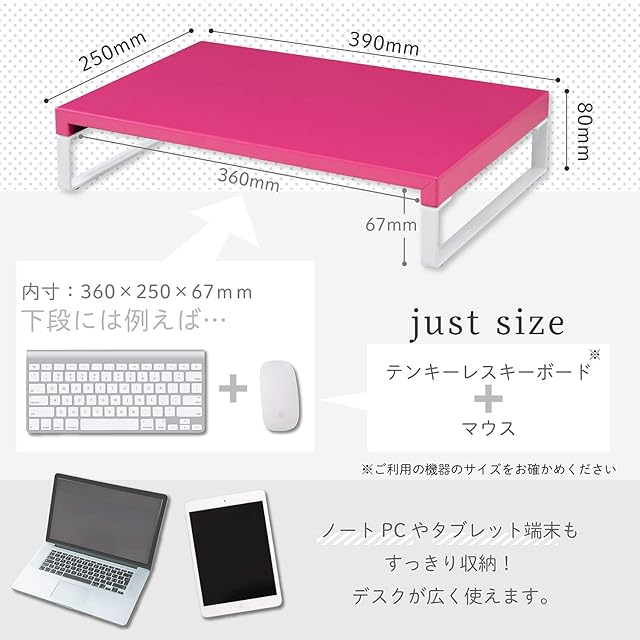 商品名:リヒトラブ パソコン台 モニター台 机上台 赤 幅39×奥行25×高さ8cm ロー 耐荷重15kg A7330-3