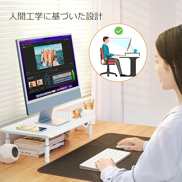 【姿勢改善】ノートパソコンを利用しているとき顔を前に出す形になり、姿勢が猫背になりがちです。PCラックを利用すると、スタンドがパソコンの高度を高め、姿勢がもっと良い、猫背を防ぎ、楽に仕事をします、もっと健康の生活を楽しみます。