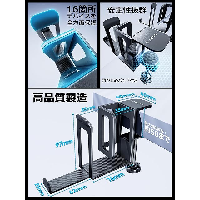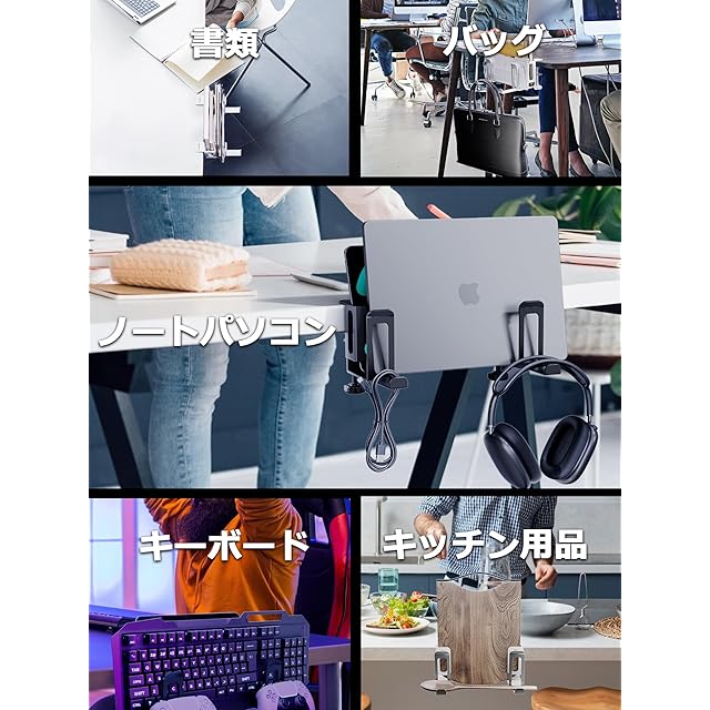 ノートパソコンスタンド 縦置き ノートPCスタンド デスクサイドラック ラップトップスタンド クランプ式 デスク収納NODOCA ノートパソコンスタンド 縦置き ノートPCスタンド デスクサイド収納ラック 幅調整可能 ラップトップスタンド デスク収納 MacBook対応 卓上収納 ノートパソコン収納ホルダー iPad対応タブレット収納 滑り止め 放熱対策 クランプ式 省スペース フック付き