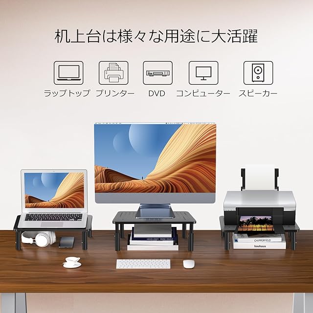 【取り付け簡単&多機能】 工具不要!ただ2分で取り付ける完了が可能です。本体は軽量で持ち運びも便利で、実用な机上台です。モニター以外に、プリンターや電話機、FAX、本など色々なものが設置できるのでシーンを選ばる多機能に使えます。オフィス、寮、学校や研究室やりピングルームなどの場合もオススメです。
