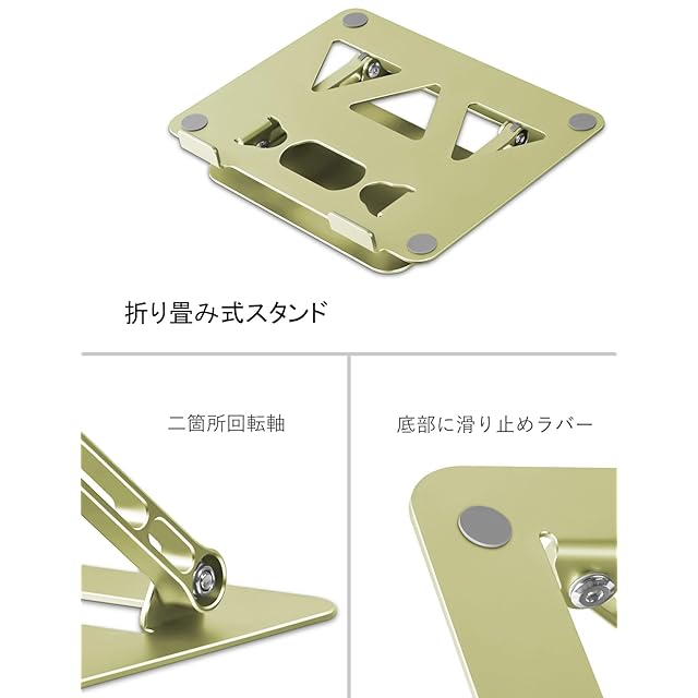 1、【安定性優越&滑り止め&創意があったデザイン】弊社のノートパソコンスタンドは高品質な6系6063のアルミニウム合金素材を使用して特別のクラフトで製造し、複雑のアノード酸化されました。製品の表面にはとても繊细なアノード酸化顆粒をついて、良い肌触りです。本体が超耐用の上に頑丈で、底部に四つの滑り止めラバーをつけ、接触面にも四つの保護用ゴムがあり、六個の中空穴はまるでアニメのキャラみたい、とても可愛いく亜細亜人の笑顔というデザインです。たま調整道具を付属したので、ノートパソコンはスタンドに載せて振動せずに作業でき、安定性は抜群です。