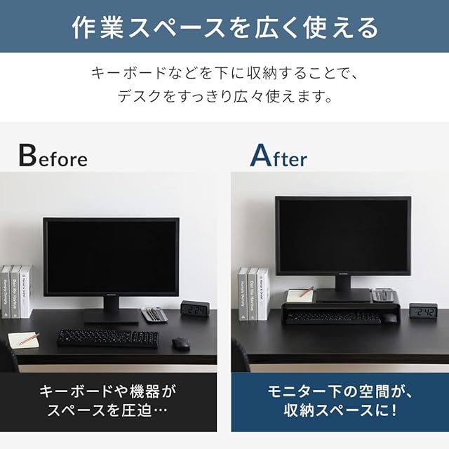 アイリスオーヤマ(IRIS OHYAMA) デスクがスッキリするモニター台 幅50cm スチールタイプ ホワイト 収納領域の大きなワイド設計 目線が上がるので首肩の負担が軽減 インテリアになじむシンプルデザイン ほこりが溜まりにくいフラット設計 モニター台 パソコン台 ディスプレイ台 机上台 PC台 プリンタ台 キーボ