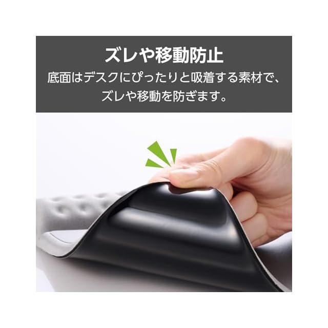 底面はデスクにぴったりと吸着する素材で、ズレや移動を防ぎます。