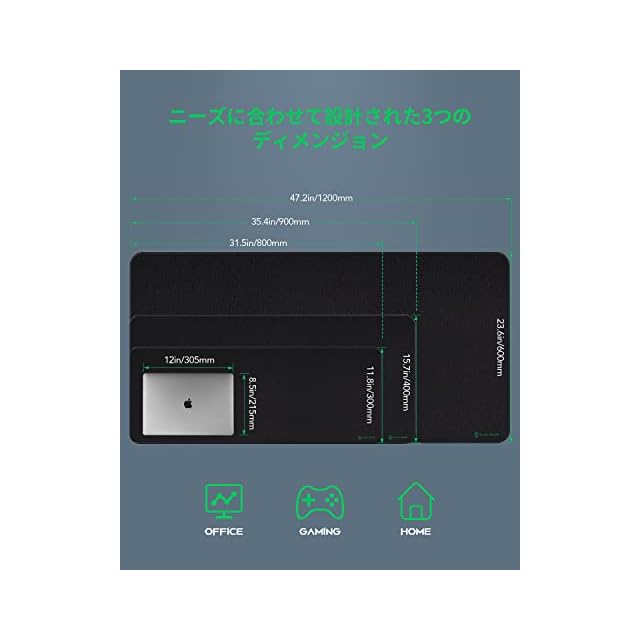 [特大サイズマウスパッド]1200 x 600 x 3 mm / 47.2 x 23.6 インチ x 0.12 インチのこのマウスパッドは、モニター、キーボード、マウスとヘッドホンの領域をカバーし、プロのゲームやオフィスでの作業に十分なスペースを提供します。