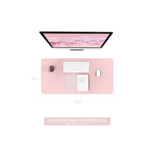 YSAGi デスクマット マウス対応 レザー デスクマット 大型マウスパッド 裏面はスエード 滑り止め 厚さ2mm 防水 防油 断熱 お手入れ簡単 オフィス 自宅用 装飾用 デスクパッド(ピンク,80*40cm)
