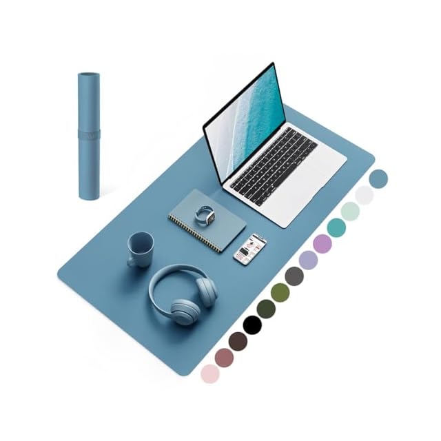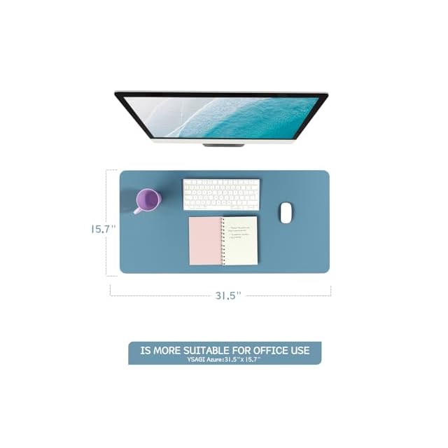 YSAGi デスクマット マウス対応 レザー デスクマット 大型マウスパッド 裏面はスエード 滑り止め 厚さ2mm 防水 防油 断熱 お手入れ簡単 オフィス 自宅用 装飾用 デスクパッド(紺碧色,80*40cm)