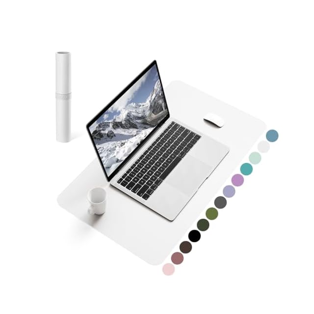 YSAGi デスクマット マウス対応 レザー デスクマット 大型マウスパッド 裏面はスエード 滑り止め 厚さ2mm 防水 防油 断熱 お手入れ簡単 オフィス 自宅用 装飾用 デスクパッド(ホワイト,60*35cm)