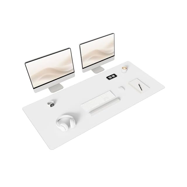 YSAGi デスクマット マウス対応 レザー デスクマット 大型マウスパッド 裏面はスエード 滑り止め 厚さ2mm 防水 防油 断熱 お手入れ簡単 オフィス 自宅用 装飾用 デスクパッド (ホワイト, 138*60cm)
