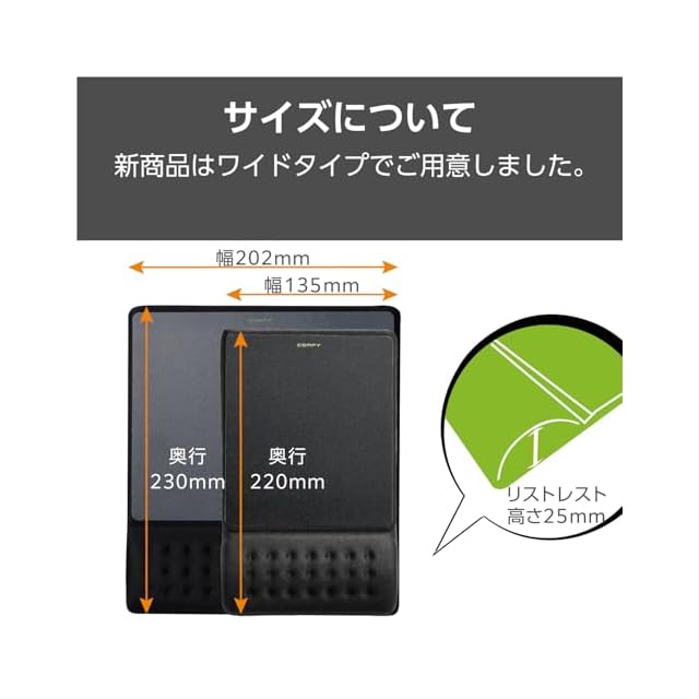長時間のパソコン作業を快適に!幅広サイズで大きなマウスもはみ出さない、リストレスト付きマウスパッドです。
