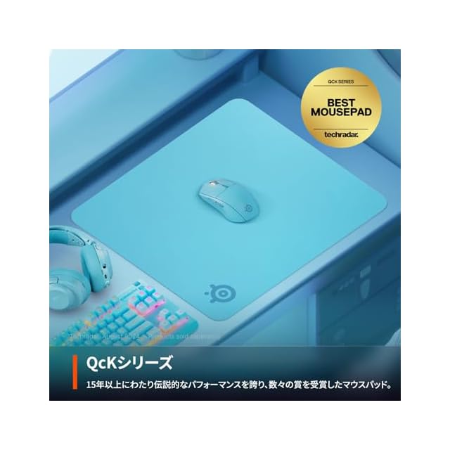商品名:SteelSeries ゲーミングマウスパッド 大型 ノンスリップラバーベース 45cm×40cm×0.2cm QcK + Aqua Lサイズ 63462 アクア