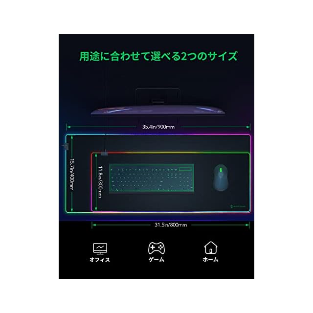 商品名:Black Shark ゲーミングマウスパッド XL 900mm x 400mm x4mm RGB マウスパッド ゲーミング 滑り止め マウスパッド 大型 11RGBモード Manta P7