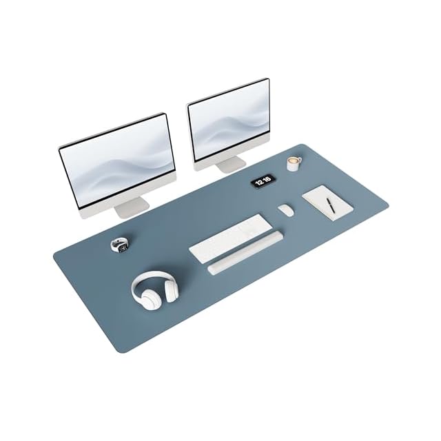 YSAGi デスクマット マウス対応 レザー デスクマット 大型マウスパッド 裏面はスエード 滑り止め 厚さ2mm 防水 防油 断熱 お手入れ簡単 オフィス 自宅用 装飾用 デスクパッド (グレイッシュブルー, 138*60cm)