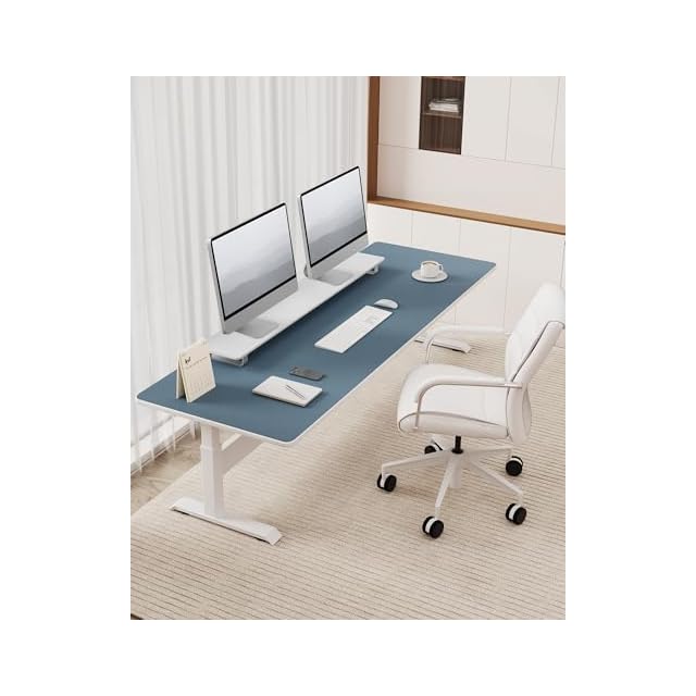 商品名:YSAGi デスクマット マウス対応 レザー デスクマット 大型マウスパッド 裏面はスエード 滑り止め 厚さ2mm 防水 防油 断熱 お手入れ簡単 オフィス 自宅用 装飾用 デスクパッド (グレイッシュブルー, 138*60cm)