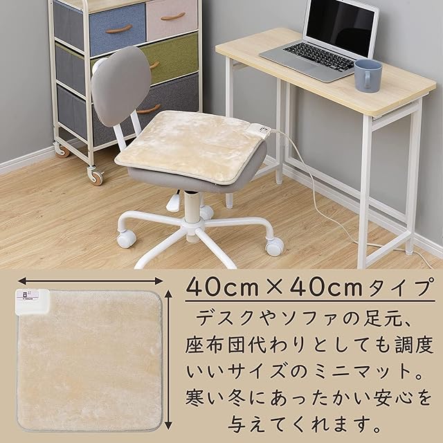 商品名:[山善] ミニマット 40×40cm ホットマット 一人用 足元マット 電気座布団 電気 ベージュ YMM-W402