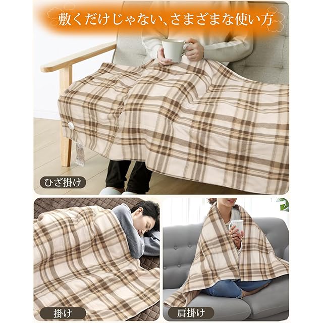 【寒い冬場の就寝時も快適に】この電気毛布は寒い季節に冷えたベッド・ふとんや身体をぽかぽかにあたため、心地よい眠りに導いてくれる電気毛布。フローリングや畳からの底冷えもしっかりシャットアウトします。適切なサイズで、ひざ掛け、肩掛け、敷き毛布としても大活躍、ベッドやソファ、デスクなどのさまざまな場所でご利用いただけます。軽いため、持ち運びにも便利で、車中泊やアウトドアなど、様々なシーンで活躍します。親、家族、友達への贈り物に最適です。