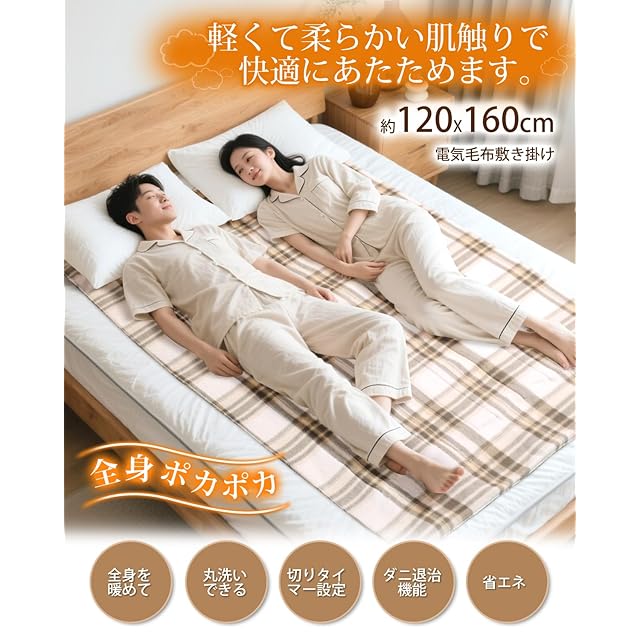 商品名:電気毛布 掛け敷き兼用 【160×120cm ダブルサイズ 切り忘れ防止タイマー付き 72W 節電】 4段階タイマー 5段階温度調整 電気毛布 掛け 速暖 省エネ 洗濯可能 電気ブランケット 頭寒足熱 ダニ退治 防寒対策 肩掛け 膝掛け シングル 毛玉なし 暖房器具 キャンプ オフィス 車中泊 ギフト PSE認証済み