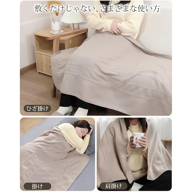 商品名:電気毛布 敷き 掛け兼用 切り忘れ防止タイマー付き 55W 節電 140×80cm 4段階タイマー 速暖 5段階温度調整 省エネ 洗濯可能 電気毛布洗える 電気ブランケット 頭寒足熱 ダニ退治 防寒対策 肩掛け 膝掛け シングル 毛玉なし 暖房器具 キャンプ オフィス 車中泊 ギフト (ライトブラウン)